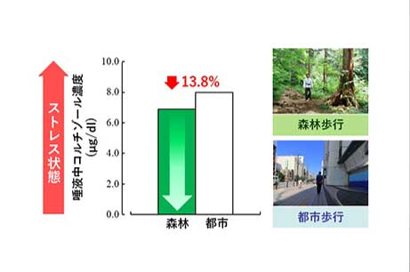 私たちの研究チームは、森林と都市でストレス状態がどのように変化するかという実験を行い、森林によるリラックス効果を科学的に解明してきました。