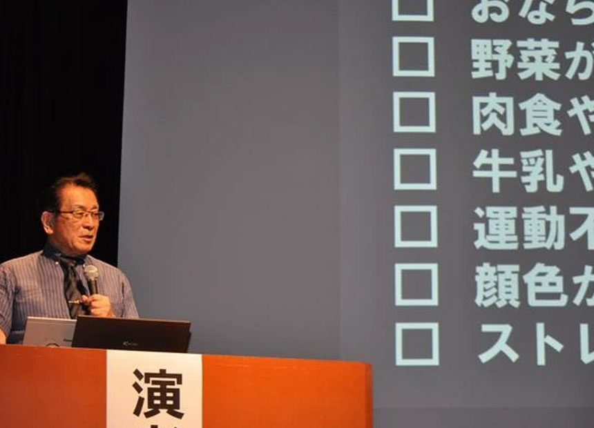 講演は6月23日、東京都江戸川区のタワーホール船堀でひらかれた第29回腸内細菌学会学術集会・市民公開講座「腸活と健康」として行われました。