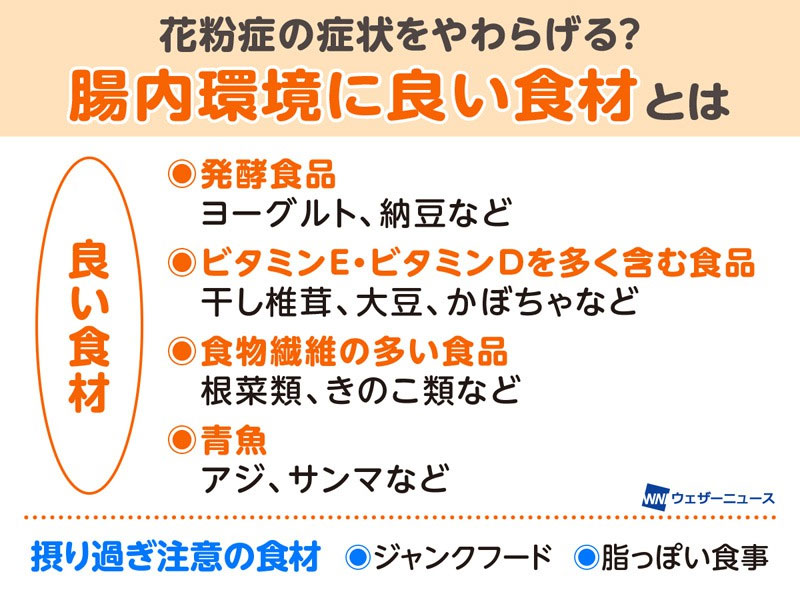 「食べたり飲んだりしたものは、腸内細菌に影響を与えることがわかっています。腸内環境の乱れは免疫に悪影響を与えます。これから来る花粉飛散ピークを迎える前に、花粉症の人はお腹から体を整えておきたいのです」(久手堅先生)